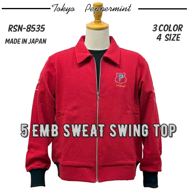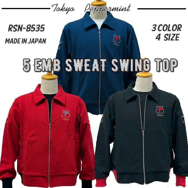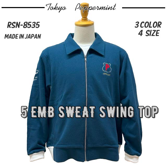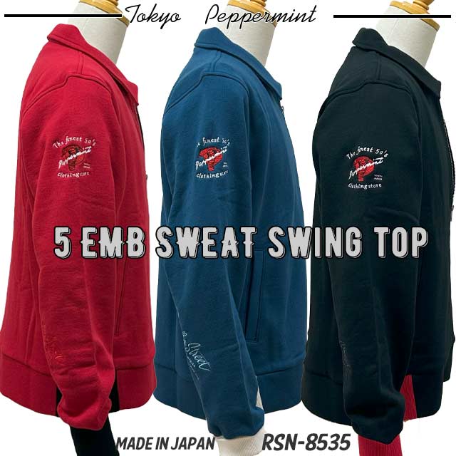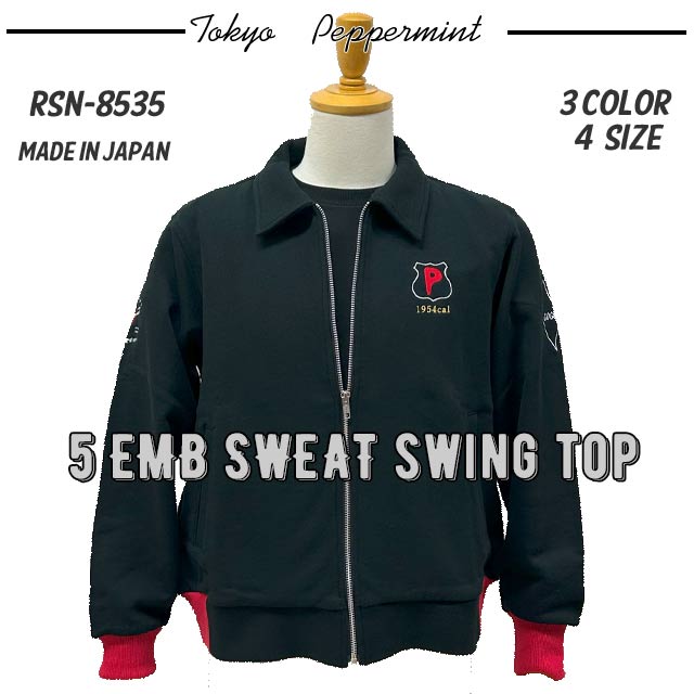 ◆PEPPERMINT RSN-8535 5 EMB SWEAT SWING TOP 左胸・両腕・両肘下 5か所の刺繍入りで新発売。JAPAN MADE◆