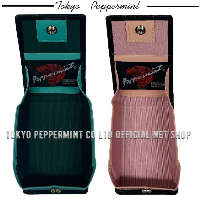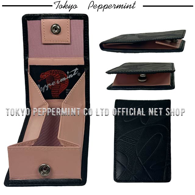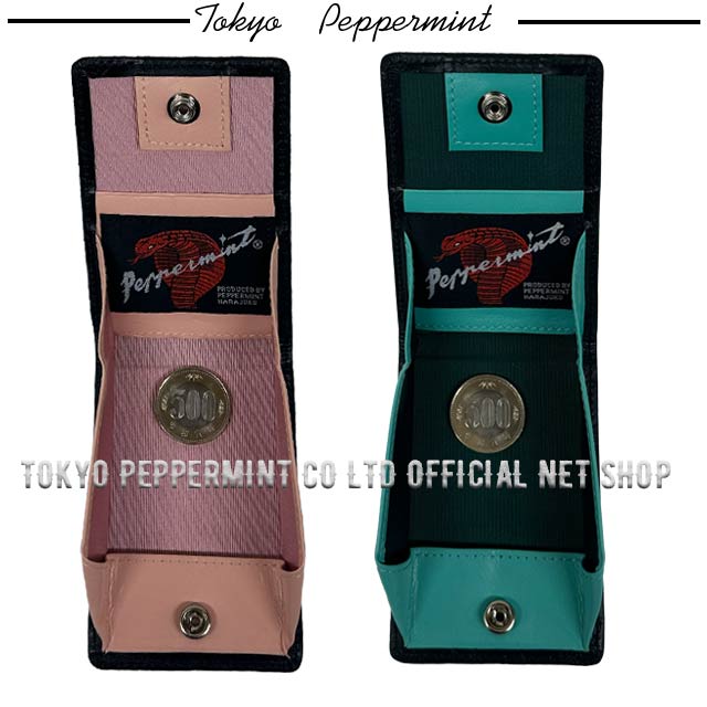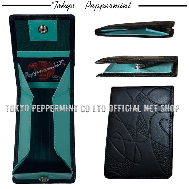 ☆ペパーミントNEW 型押しコインケース☆ 新作の改訂版型押しコインケースが新登場いたしました。 内側の生地の一部がファブリック(生地)に変更になりました。 かなり使い勝手がいいです。 コインを取り出しやすく、しまいやすい。 コブラタグの後ろにポケットが付ていますので、 カードや自動改札カードなどが入れられます。 ちょっとコンビニや、チョットした買い物に大きい 財布を持って行くよりは、とてもスマートで使いやすいですよ。 シャツのポケットにもすんなり入るこの大きさは本当に便利 また小銭をジャラジャラポケットに入れるよりは、 スマートでオシャレです。1円10円単位のお釣りはとても 邪魔。でも無いとまた釣り銭がどんどん増えてしまう。そんな貴兄にぜひお勧めします。 表側は一番人気定番の50sパターンの型押しの黒 使い込むほど艶が出ます。 中が3色展開でミントグリーン・白・ピンクです。外側はすべて黒の型押しになります。 一見なんの変哲もないケースに見えますが、なかを開けて しっかり自己主張!ペパーミントならではのデザイン。 オンでもオフでも全然OKです。かっこよさの秘訣は小銭をあまり 入れ過ぎないことパンパンに入れるとコインが溢れることも有ります。